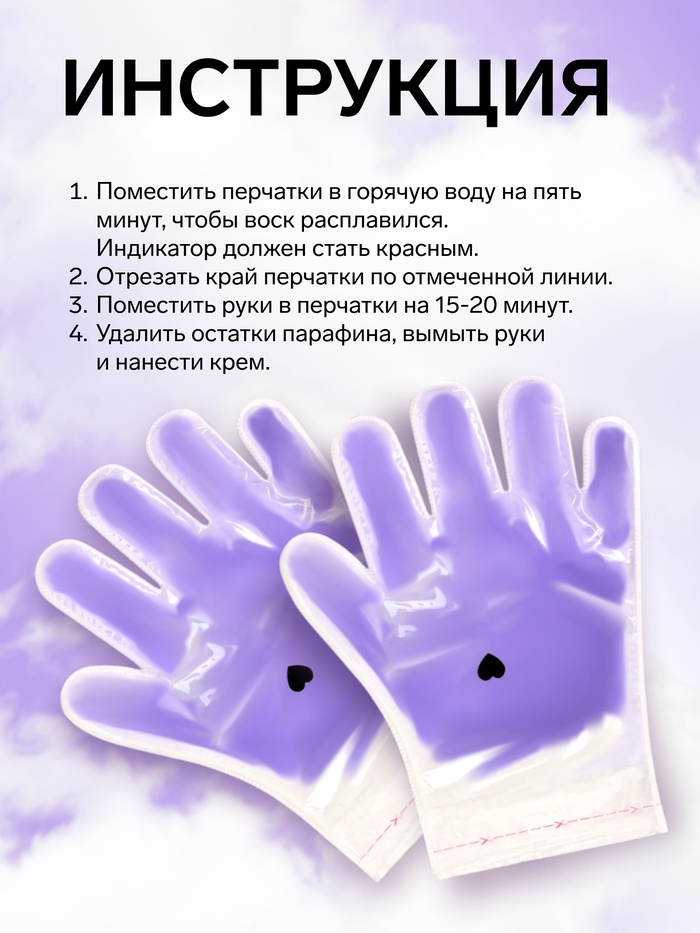 1. Поместить перчатки в горячую воду на пять минут, чтобы воск расплавился. Индикатор-сердечко должен стать красным.