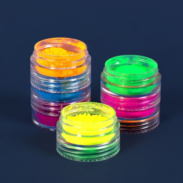 Пигмент для ногтей, набор 6 баночек, 3 г, разноцветный