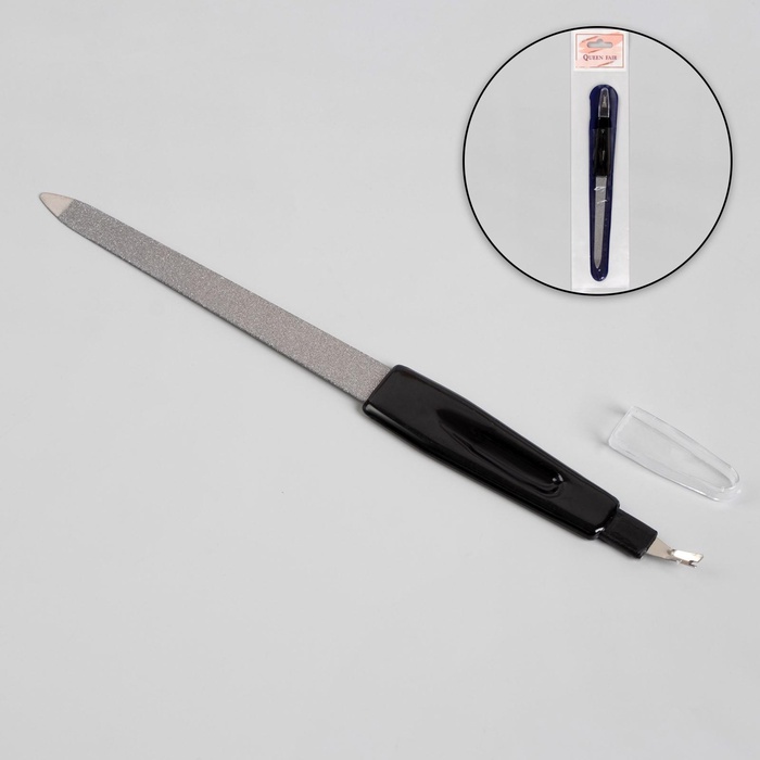 Пилка-триммер металлическая для ногтей, 17 см, с защитным колпачком, в чехле, чёрная