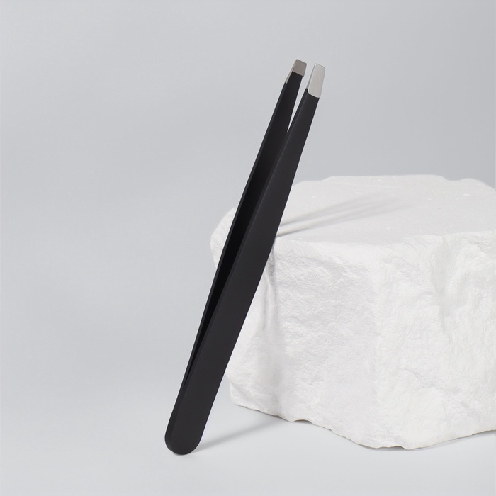Пинцет прямой, широкий, 9.5 см, чёрный