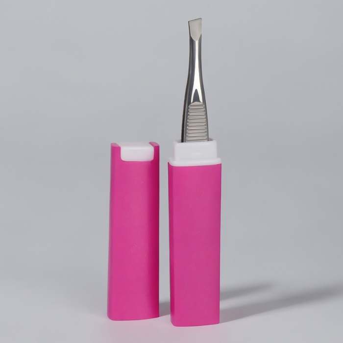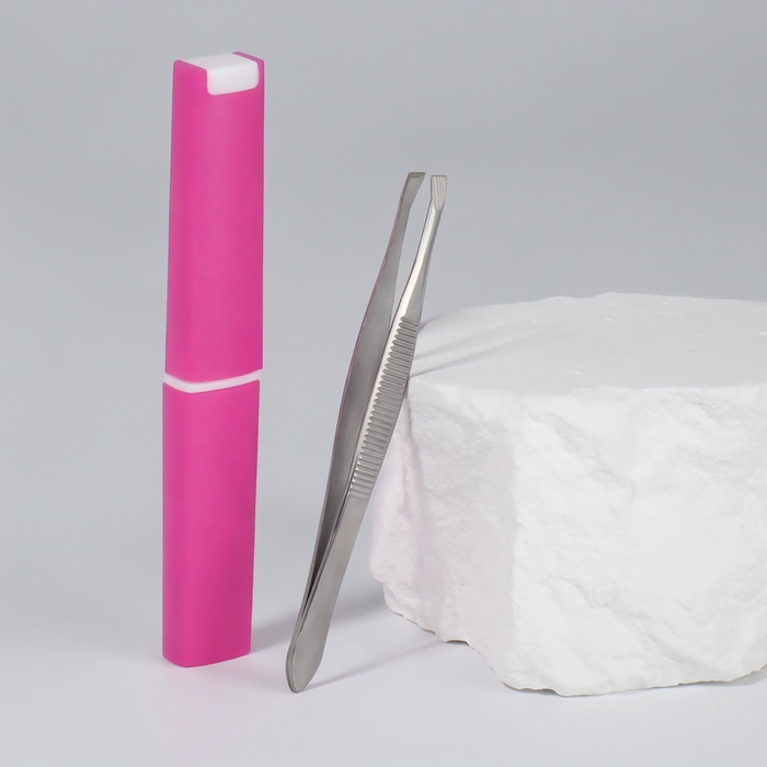 Пинцет скошенный, узкий, 9 см, в футляре, МИКС