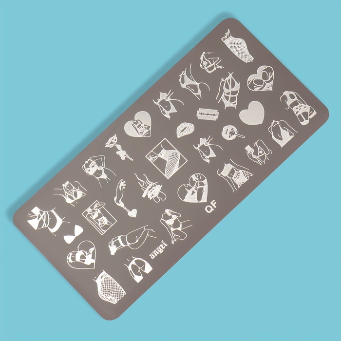 Для достижения четких рисунков желательно использовать специальную краску. Варианты сочетания узоров на основе данного диска могут прекрасно комбинироваться между собой и с другими техниками, создавая поистине уникальный дизайн. Пластина предлагает разнообразные изображения, в том числе элементы женского тела и сердечки, позволяющие проявить креативность.