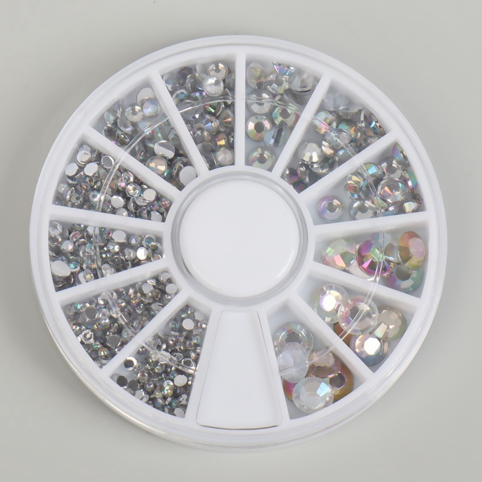 Стразы для декора, 12 ячеек, 1.5/2/2.5/3 мм, голографические