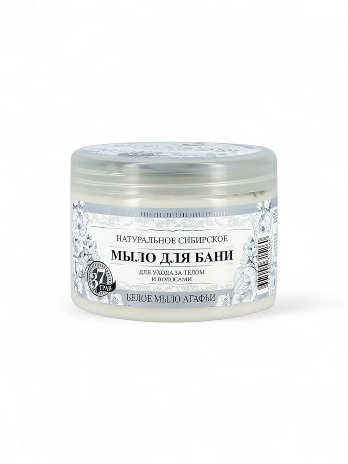 Белое мыло для бани Агафьи «Натуральное Сибирское» — гармония природы и традиций, деликатный уход и свежесть для кожи и волос.