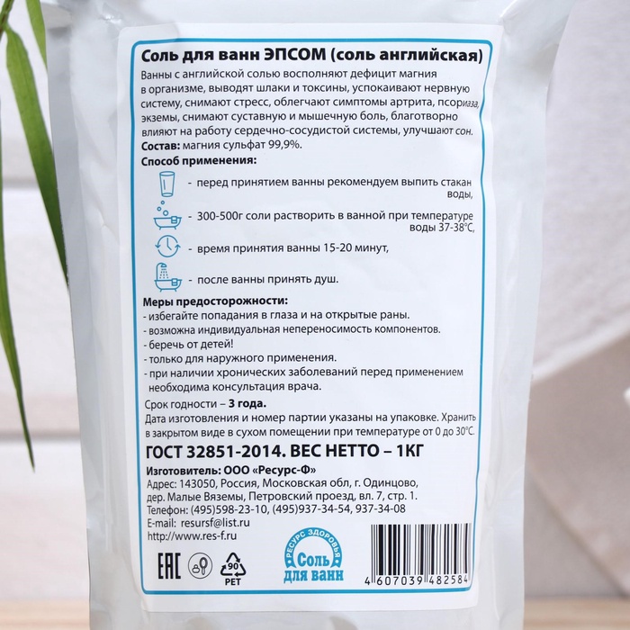 Соль для ванн EPSOM «Английская магниевая», 1 кг