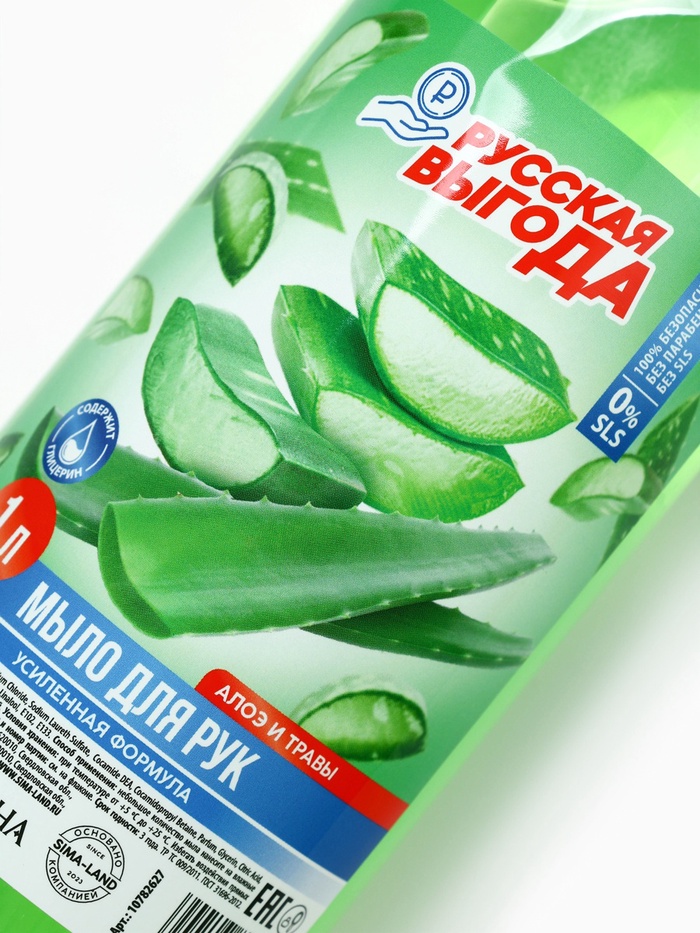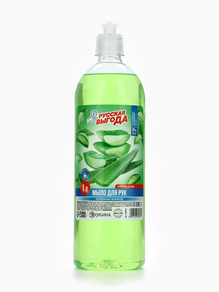 Жидкое мыло для рук РУССКАЯ ВЫГОДА, аромат алоэ и травы, 1000 мл