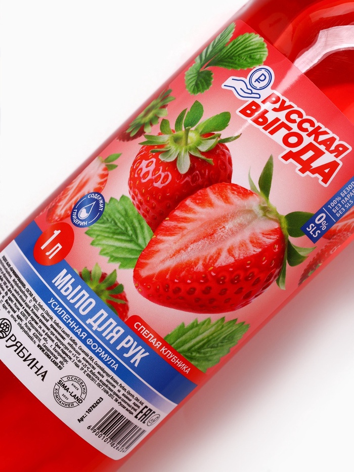 Жидкое мыло для рук РУССКАЯ ВЫГОДА, аромат спелая клубника, 1000 мл