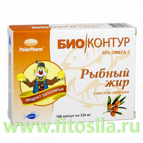 Рыбный жир с маслом облепихи "БиоКонтур" - БАД, № 100 капс. х 0,33 г