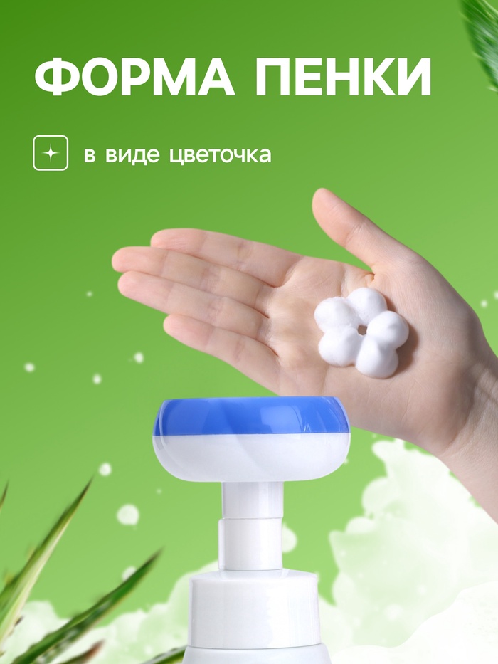 При нажатии на дозатор появляется воздушная пена в форме красивого цветочка, превращая обычный уход в приятный ритуал. Специальная формула бережно очищает кожу, оставляя ощущение свежести и комфорта.
