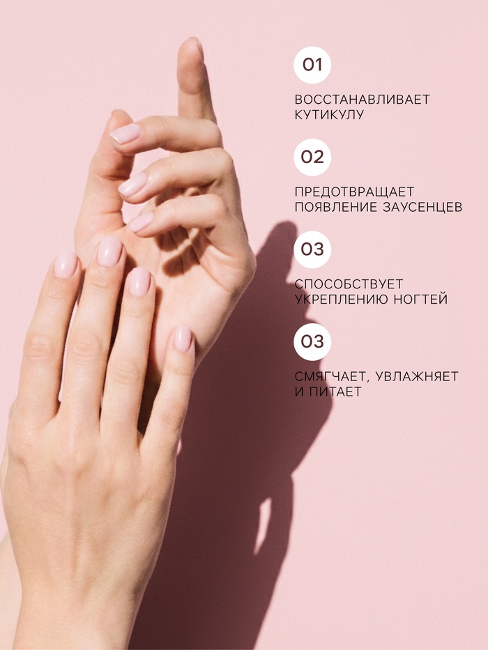 Незаменимое средство для кутикулы. Композиция из масел сладкого миндаля, кокосового масла, масла персика и чайного дерева глубоко увлажняет и питает кожу, восстанавливая ее и предотвращая избыточное нарастание кутикулы. Масло идеально подходит для хрупких и тонких ногтей. Экстракт ананаса известен своими укрепляющими и антисептическими свойствами. Кроме того, он предотвращает ломкость, придает ногтям блеск и ухоженный вид. Экстракт Монарды обладает мощным бактерицидным действием, оказывает противовоспалительное, антиоксидантное, адаптогенное, антиканцерогенное и высокое консервирующее действие.