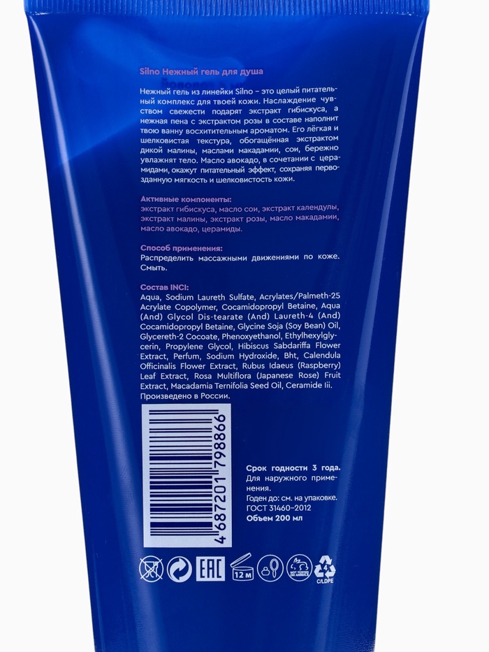 Гель для душа Silno с экстрактом гибискуса и розы, 200 мл