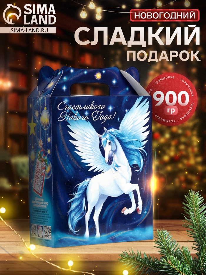 * Оформление с праздничным смыслом: Коробка оформлена в новогодней теме с символом 2026 года - Лошадью. Такая упаковка уместна на утреннике, корпоративе или в качестве небольшого жеста внимания друзьям и коллегам.