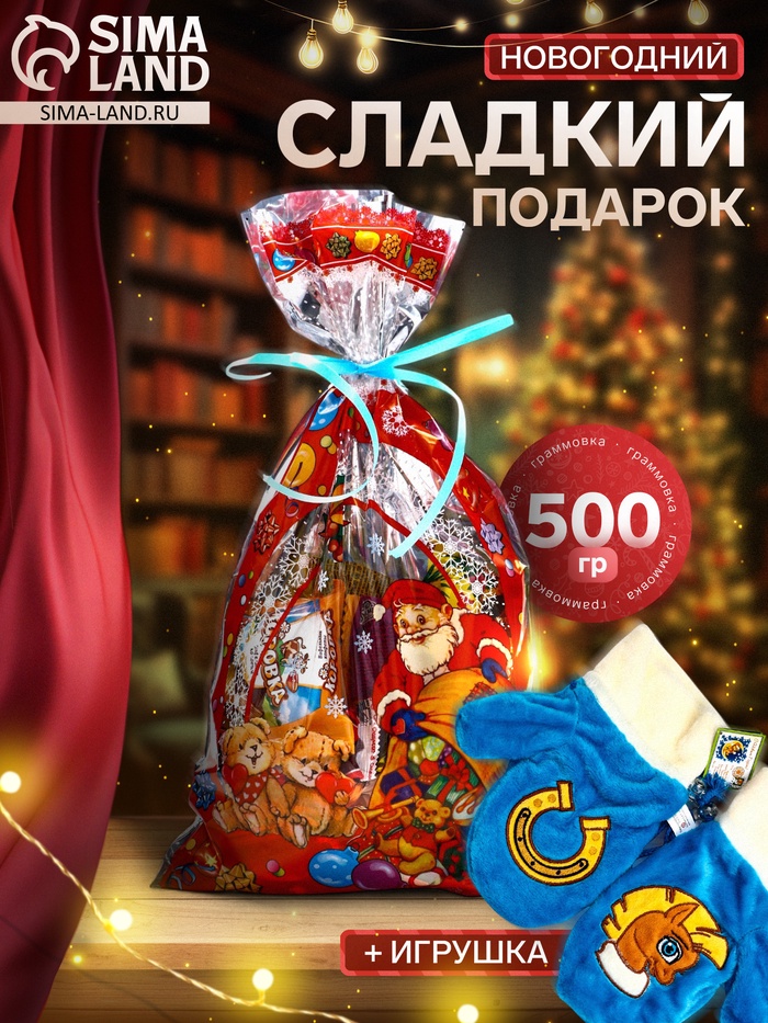 Сладкий новогодний подарок «Варежки», конфеты + игрушка, детский, 500 г