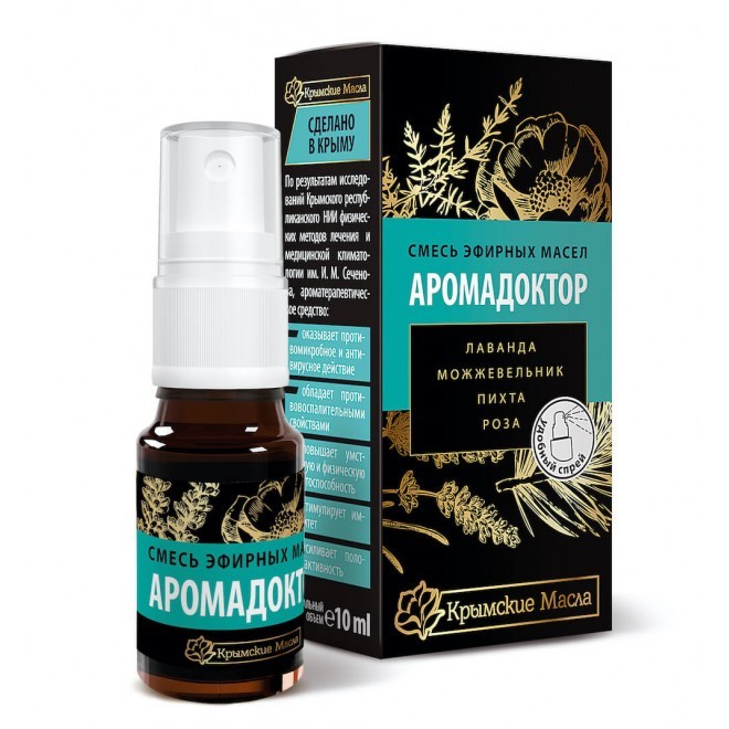 Ароматерапевтическое средство «АРОМАДОКТОР» представляетсобой смесь 100% эфирных масел лаванды, можжевельника, розы и пихты. Предназначено для аэрофитотерапии, приёма ароматических ванн, ингаляций, массажа, обёртываний, компрессов, ароматизации помещений, для ароматизации в русской бане илисауне. Оздоровительный эффект эфирных масел, входящих в состав «АРОМАДОКТОРА», оценивался у экипажей космической станции «Мир» и подводных лодок, у лиц, пострадавших в результате аварии на Чернобыльской АЭС, в детских коллективах, на крупных промышленных предприятиях. МЕХАНИЗМЫ ДЕЙСТВИЯ СРЕДСТВА • Антибактериальное и антивирусное действие • Иммунопротекторная активность • Усиление половой активности • Повышение умственной и физической работоспособности • Противовоспалительное действие ПОКАЗАНИЯ К ПРИМЕНЕНИЮ Сокращения: И – ингаляции, АФТ – аэрофитотерапия, АВ – ароматические ванны, О – обертывания, К – компрессы, Б – бани, ЛМ – лечебный массаж. • Острые респираторные заболевания — АФТ • Острые и хронические заболевания ЛОР органов: синуситы, риниты, тонзиллиты, фарингиты, ларингиты — И, АФТ • Острые и хронические заболевания бронхов и лёгких: бронхиты, бронхиальная астма, пневмония — И, АФТ, АВ, О, Б, ЛМ • Неврологические расстройства: депрессии, синдром хронической усталости, неврозы, бессонницы – АФТ, АВ, Б, ЛМ • Сексуальные нарушения – АФТ, АВ, ЛМ • Гипертоническая болезнь I-II ст. – АФТ, ЛМ • Заболевания опорно-двигательного аппарата: артриты, остеоартроз, остеохондроз – АВ, К, Б, ЛМ АЭРОФИТОТЕРАПИЯ: благодаря применению флакона с механическимнасосом-спреем «АРОМАДОКТОР» легко дозировать. При нажатии на поршеньнасоса в окружающую среду распыляется около 3-х капель средства. Для ароматизации жилого помещения достаточно 1-2 нажатий. Также для аэрофитотерапии можно использовать аромалампы (аромакурительницы), аромаккумуляторы,увлажнители воздуха, электрические ароматизаторы: «Mountain breeze», «Life Stream», «Аэрофит», «Фитос», «Аром-1», ПАРИЖ-01 и др. Длительность сеанса аэрофитотерапии — от 1 до 3 часов. АРОМАТИЧЕСКИЕ ВАННЫ: в тёплую (35-40 СО) ванну добавить от 2 до 14 капель средства (1 – 5 нажатий). Продолжительность процедуры – 20 мин. Проводят через день или с перерывом на третий день. Курс – 15-20 ванн. ОБЁРТЫВАНИЯ: в 2 литра тёплой воды добавить 5-10 капель средства, намочить этой смесью простынь, отжать, быстро и плотно обернуть ею тело. Продолжительность – не более 60 мин. КОМПРЕСС: в 300-400 мл. тёплой воды добавить от 2 до 6 капель средства, намочить смесью хлопчатобумажную ткань, слегка отжать и приложить к коже. Продолжительность процедуры – до 2-х часов. При головных болях, растяжениях, применяют холодные компрессы: смесь из 6-10 капель средства в 0,5 л. ледяной воды. Продолжительность – до нагревания компресса до температуры тела. САУНА (СУХОВОЗДУШНАЯ БАНЯ): за 2-3 минуты до выхода из потельной выплеснуть на раскалённые камни 250-500 мл. раствора эф. масла (2 капли на 250 мл. воды). РУССКАЯ БАНЯ: смесью из 20 капель средства на 0,5 л. воды поливают печь-каменку перед каждым заходом. ЛЕЧЕБНЫЙ МАССАЖ: используют смесь из 30 мл. массажного масла и 10-20 капель средства. Ароматические сеансы можно проводить 1-2 раза ежедневно; ванны – до 3-х раз в неделю; аромамассаж – ежедневно; компрессы – не чаще 1 раза в день; сауну – 1 раз в неделю. В отдельных случаях у больных, страда