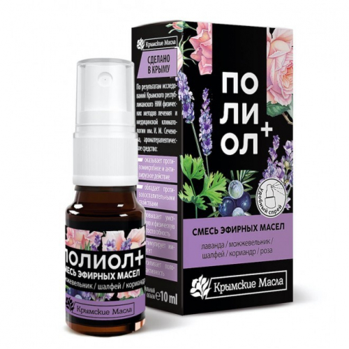 Ароматерапевтическое средство «ПОЛИОЛ» представляет собойсмесь 100% эфирных масел лаванды, шалфея, кориандра и розы.Предназначено для аэрофитотерапии, приёма ароматичских ванн,ингаляций, массажа, обёртываний, компрессов, ароматизации помещений,для ароматизации в русской бане или сауне. Оздоровительный эффект эфирных масел, входящих в состав«ПОЛИОЛА», оценивался у экипажей космической станции «Мир» и подводных лодок, у лиц, пострадавших в результате аварии на Чернобыльской АЭС, в детских коллективах, на крупных промышленных предприятиях. МЕХАНИЗМЫ ДЕЙСТВИЯ СРЕДСТВА • Антимикробное и антивирусное действие в воздушной среде • Усиление половой активности • Повышение умственной и физической работоспособности • Противовоспалительное действие • Стимуляция иммунитета ПОКАЗАНИЯ К ПРИМЕНЕНИЮ Сокращения: И – ингаляции, АФТ – аэрофитотерапия, АВ – ароматические ванны, О – обертывания, К – компрессы, Б – бани, ЛМ – лечебный массаж. • Острые респираторные заболевания — АФТ • Острые и хронические заболевания ЛОР органов: синуситы, риниты, тонзиллиты, фарингиты, ларингиты — И, АФТ • Острые и хронические заболевания бронхов и лёгких: бронхиты, бронхиальная астма, пневмония — И, АФТ, АВ, О, Б, ЛМ • Неврологические расстройства: депрессии, синдром хронической усталости, неврозы, бессонницы – АФТ, АВ, Б, ЛМ • Сексуальные нарушения – АФТ, АВ, ЛМ • Гипертоническая болезнь I-II ст. – АФТ, ЛМ • Заболевания опорно-двигательного аппарата: артриты, остеоартроз, остеохондроз – АВ, К, Б, ЛМ АЭРОФИТОТЕРАПИЯ: благодаря применению флакона с механическимнасосом-спреем «ПОЛИОЛ» легко дозировать. При нажатии на поршеньнасоса в окружающую среду распыляется около 3-х капель средства. Для ароматизации жилого помещения достаточно 1-2 нажатий. Также для аэрофитотерапии можно использовать аромалампы (аромакурительницы), аромаккумуляторы,увлажнители воздуха, электрические ароматизаторы: «Mountain breeze», «Life Stream», «Аэрофит», «Фитос», «Аром-1», ПАРИЖ-01 и др. Длительность сеанса аэрофитотерапии — от 1 до 3 часов. АРОМАТИЧЕСКИЕ ВАННЫ: в тёплую (35-40 СО) ванну добавить от 2 до 14 капель средства (1 – 5 нажатий). Продолжительность процедуры – 20 мин. Проводят через день или с перерывом на третий день. Курс – 15-20 ванн. ОБЁРТЫВАНИЯ: в 2 литра тёплой воды добавить 5-10 капель средства, намочить этой смесью простынь, отжать, быстро и плотно обернуть ею тело. Продолжительность – не более 60 мин. КОМПРЕСС: в 300-400 мл. тёплой воды добавить от 2 до 6 капель средства, намочить смесью хлопчатобумажную ткань, слегка отжать и приложить к коже. Продолжительность процедуры – до 2-х часов. При головных болях, растяжениях, применяют холодные компрессы: смесь из 6-10 капель средства в 0,5 л. ледяной воды. Продолжительность – до нагревания компресса до температуры тела. САУНА (СУХОВОЗДУШНАЯ БАНЯ): за 2-3 минуты до выхода из потельной выплеснуть на раскалённые камни 250-500 мл. раствора эф. масла (2 капли на 250 мл. воды). РУССКАЯ БАНЯ: смесью из 20 капель средства на 0,5 л. воды поливают печь-каменку перед каждым заходом. ЛЕЧЕБНЫЙ МАССАЖ: используют смесь из 30 мл. массажного масла и 10-20 капель средства. Ароматические сеансы можно проводить 1-2 раза ежедневно; ванны – до 3-х раз в неделю; аромамассаж – ежедневно; компрессы – не чаще 1 раза в день; сауну – 1 раз в неделю. В отдельных случаях у больных, страдающих дермо- и алле