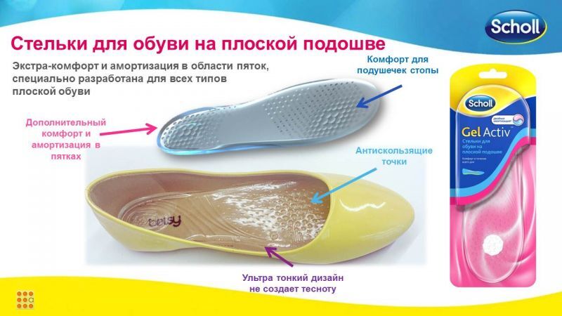 Стельки Scholl Gel Activ обеспечивают повышенный комфорт для обуви на плоской подошве. Со стельками Scholl GelActiv для модельной обуви теперь экстра комфортно даже в узкой обуви на плоской подошве!