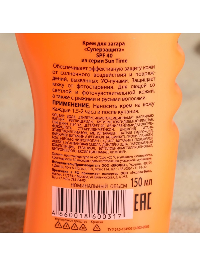 Крем для загара «Биокон» солнцезащитный SPF 40, 150 мл
