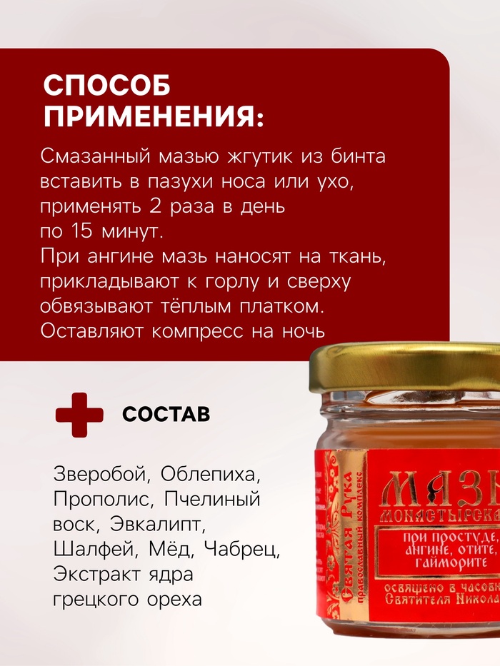Мазь при простуде, ангине, отите и гайморите «Святая Рука», 30 мл