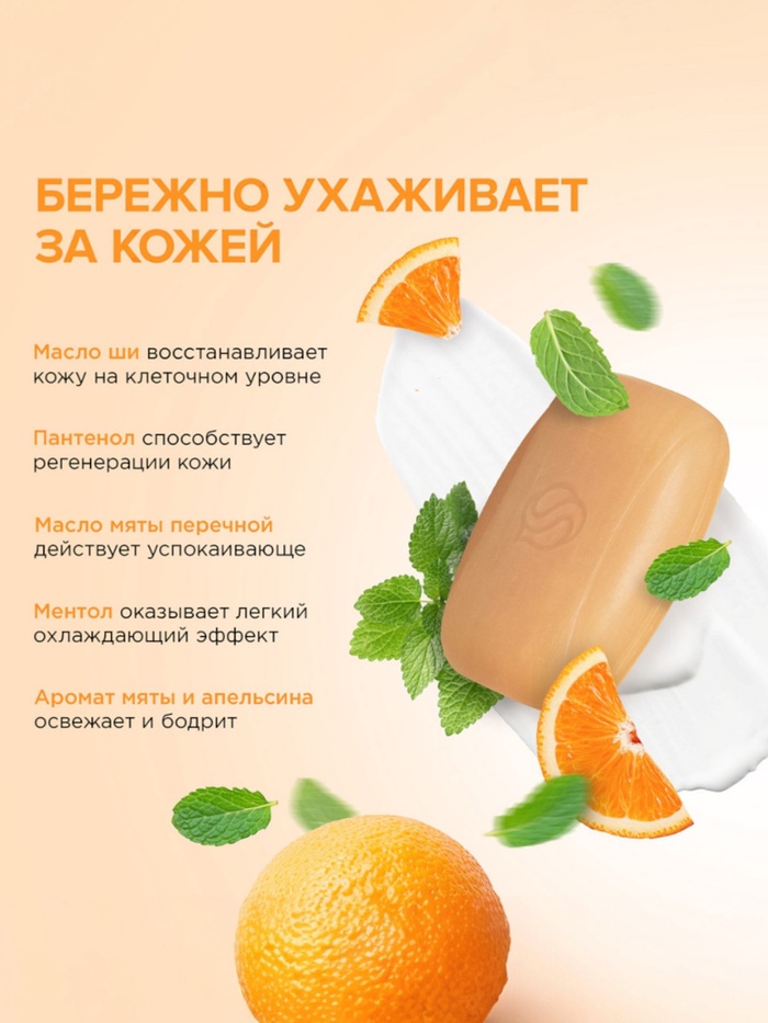 Натуральное кусковое туалетное мыло SYNERGETIC "Масло мяты и апельсин" - средство для мягкого очищения и ухода за кожей, более чем на 99% состоящее из натуральных компонентов. Мыло имеет натуральную основу, изготовленную из растительных масел, которые бережно воздействуют на кожу, предохраняя от пересушивания при частом мытье рук. Натуральные эфирные масла и экстракты оказывают дополнительный уход и восстановление, а зелёные хелаты не наносят вред окружающей среде. Пантенол - незаменимый по эффективности компонент для защиты сухой и чувствительной кожи, он усиливает действие увлажняющих компонентов и способствует восстановлению барьерных функций. Парфюмерная композиция на основе натуральных эфирных масел эвкалипта, апельсина и перечной мяты оставляет на коже потрясающий аромат. Нанести на влажную кожу, вспенить и смыть водой. Только для наружного применения. Беречь от детей. При попадании средства в глаза промыть водой. Использовать строго по назначению. Aqua, Sodium Cocoamphoacetate (мягкий ПАВ), Cocamidopropyl Betaine (мягкий ПАВ), Glycerin (растительный увлажнитель), Caprylyl/Capryl Glucoside (мягкий ПАВ), Candida Bombicola/Glucose/Methyl Rapeseedate Ferment (софоролипиды рапсового масла), Aloe Barbadensis Leaf Juice (сок алоэ), Vitis Vinifera Seed Extract (экстракт виноградной косточки), Sweet Almond Oil Polyglyceryl-4 Esters (масло миндаля), Sodium Hyaluronate (гиалуроновая кислота), Saccharide Isomerate (растительный увлажнитель), Trehalose (натуральный полисахарид, пребиотик), Lactic Acid (молочная кислота), Parfum, Dehydroacetic Acid, Benzyl Alcohol, Benzoic Acid, Sodium Benzoate, Potassium Sorbate (консерванты), Citric Acid, Sodium Citrate (регуляторы кислотности).