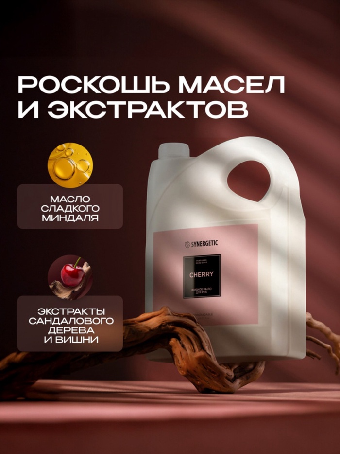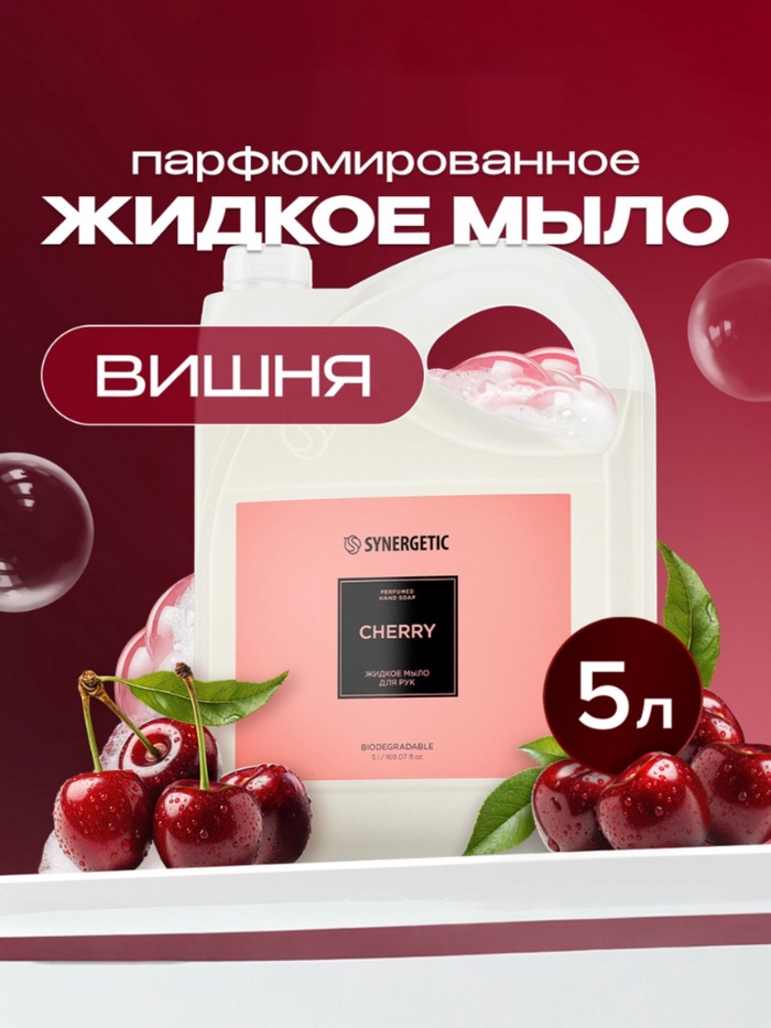 Погрузитесь в ароматный мир ухода! Парфюмированное мыло с вишневым ароматом от Synergetic в формате 5 литров – идеальное решение для ухода за руками, наслаждайтесь непревзойденной свежестью каждый день.