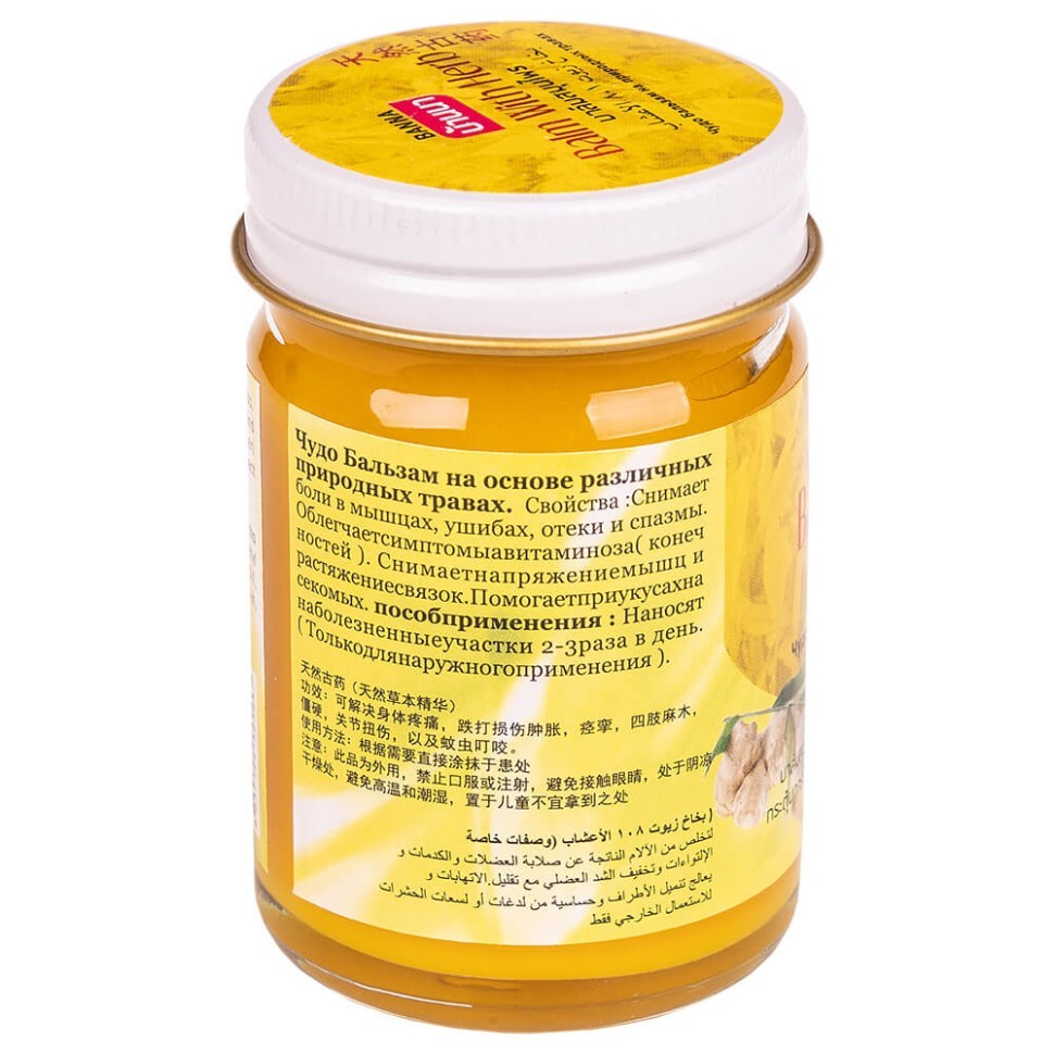 Жёлтый бальзам от тайского бренда Banna (Банна) изготовлен из масел натуральных трав и литьев растений, известных своими противовоспалительными и успокаивающими свойствами. Обезболивающее, антисептическое действие оказывают пурпурный имбирь.
