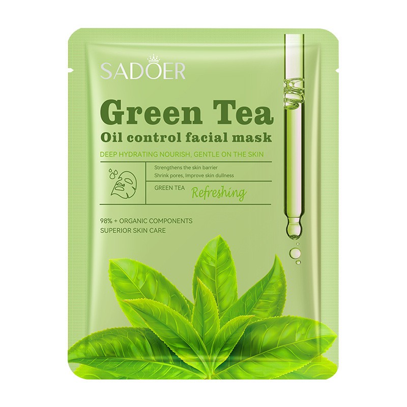 Тканевая маска для жирной кожи лица с экстрактом Зеленого чая Sadoer