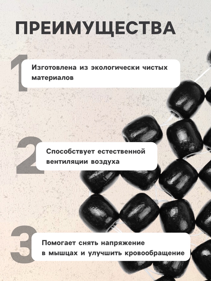 Накидка-массажёр TORSO станет полезным приобретением для водителей и людей, ведущих преимущественно сидячий образ жизни и испытывающих из-за этого болевые ощущения и постоянный дискомфорт. Изделие окажет благотворное воздействие на мышцы: разомнёт их и снимет усталость. На рабочем месте, в машине и дома вы всегда стремитесь окружить себя комфортом. Для того чтобы сидячий образ жизни не сказывался негативно на вашем организме, используйте деревянную накидку на кресло. Она снимет нагрузку с позвоночника, улучшит кровообращение, обеспечит вам хорошую вентиляцию тела и удобство. Аксессуар станет полезным подарком для любого водителя и офисного работника.