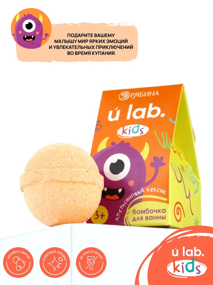 Бомбочка детская для ванны «Монстрики», аромат апельсиновый кексик 40 г, URAL LAB