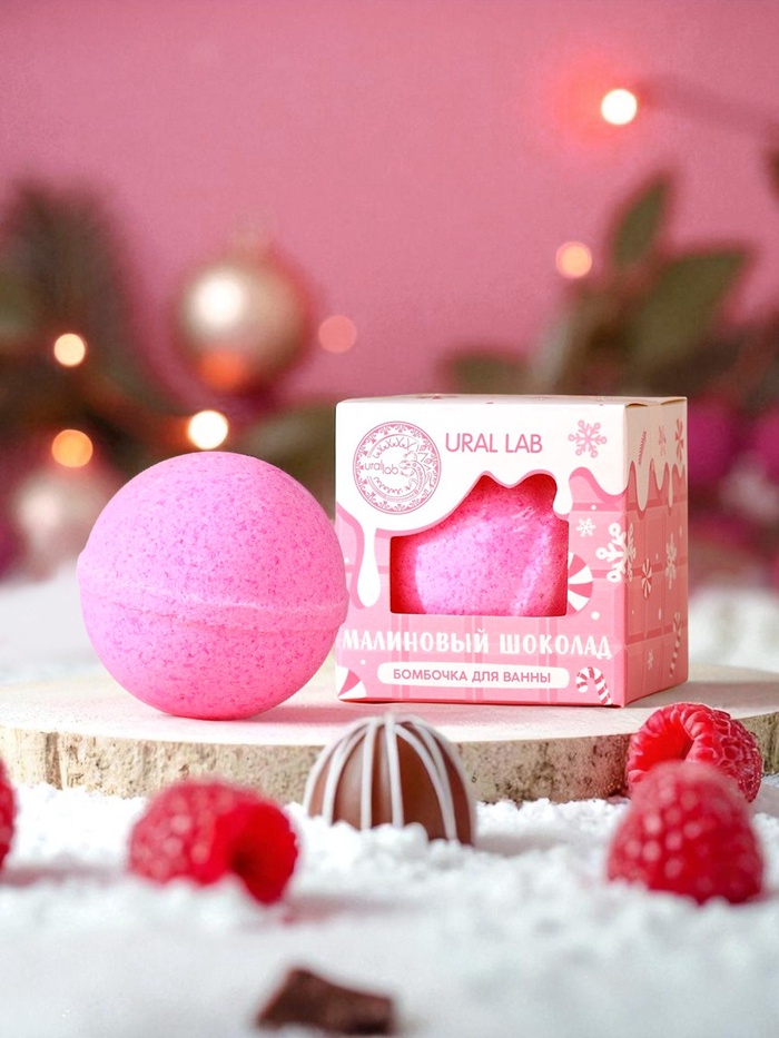 Бомбочка для ванны, 120 г, аромат малинового шоколада, URAL LAB