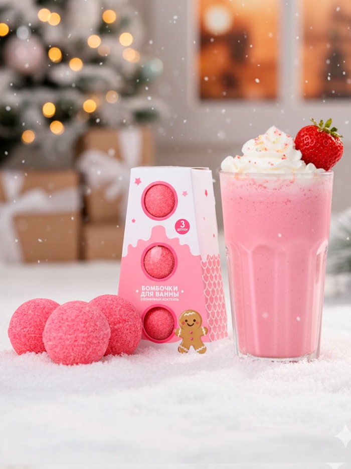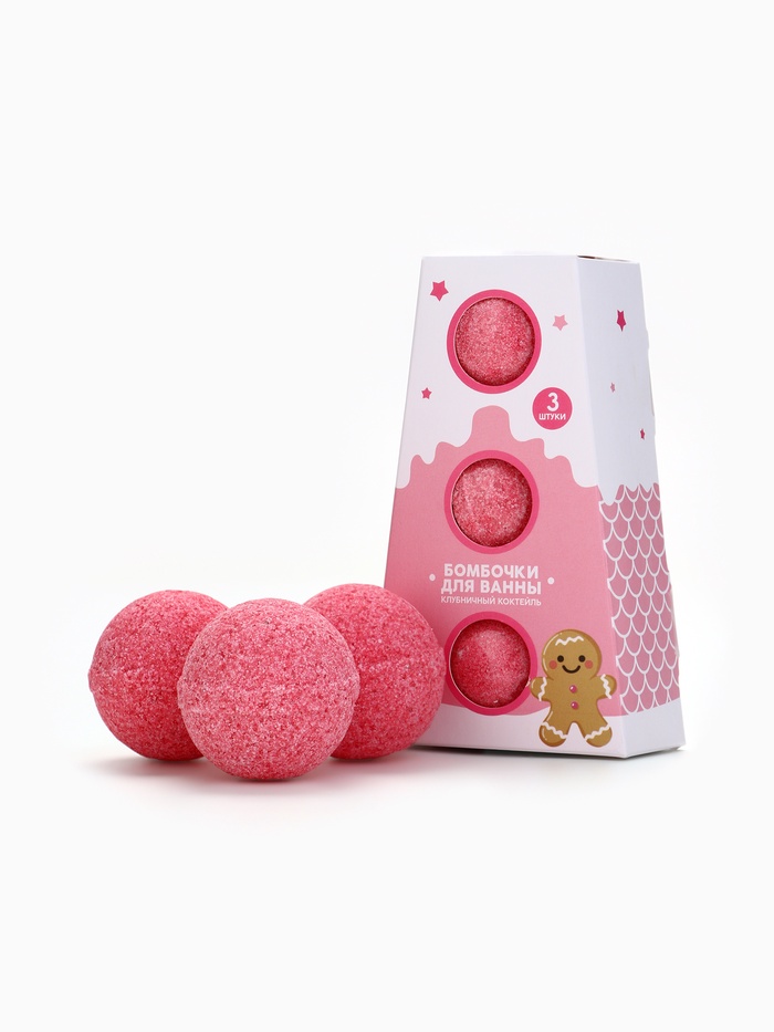 Бомбочки для ванны, аромат клубничный коктейль, набор 3 шт. × 40 г, URAL LAB