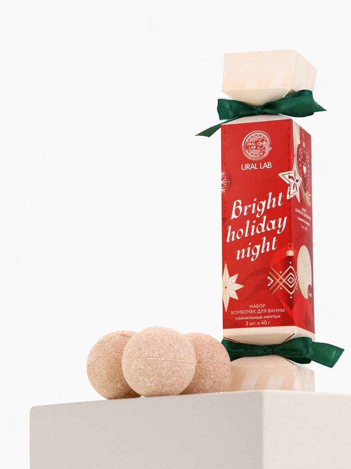 Бомбочки для ванны Bright holiday night, набор 3 шт. × 40 г, аромат ванильные мечты, URAL LAB