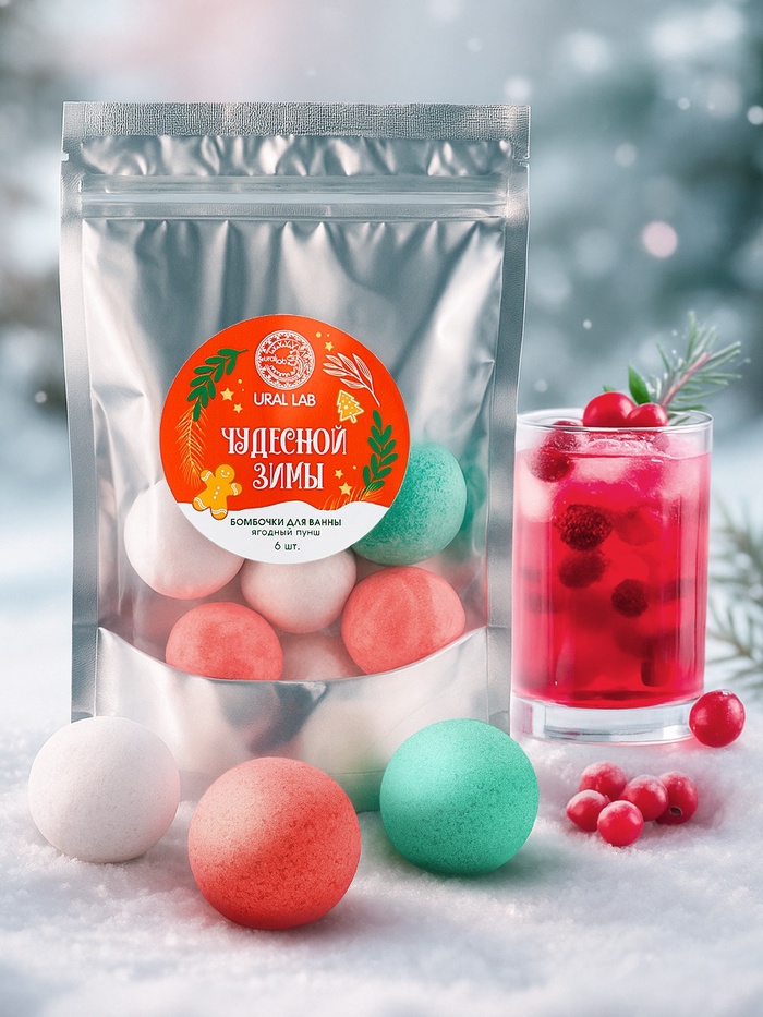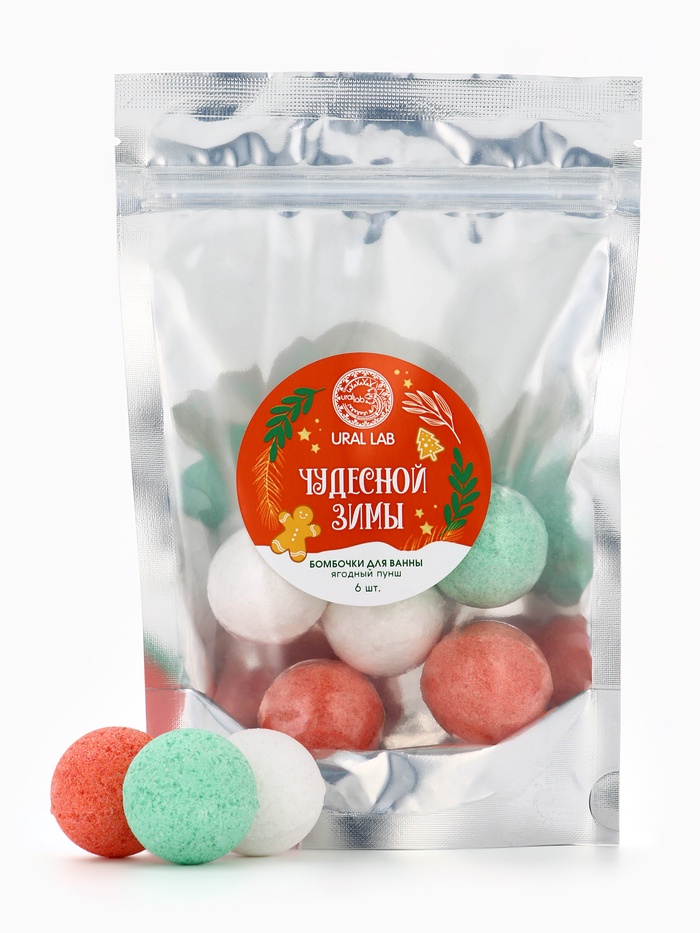 Бомбочки для ванны «Чудесной зимы», 6 шт. по 20 г, ягодный пунш, URAL LAB