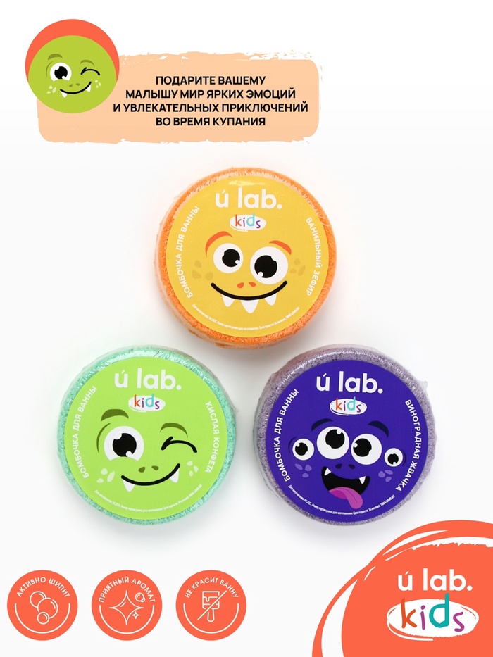 Бомбочки для ванны детские «Монстрики», набор 3×100 г, ULAB