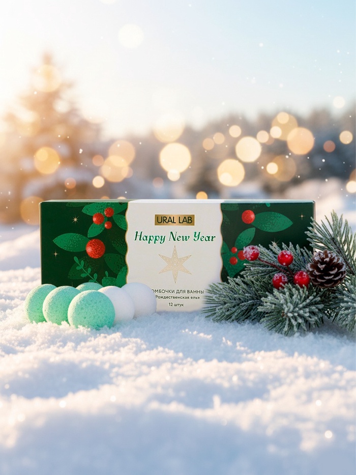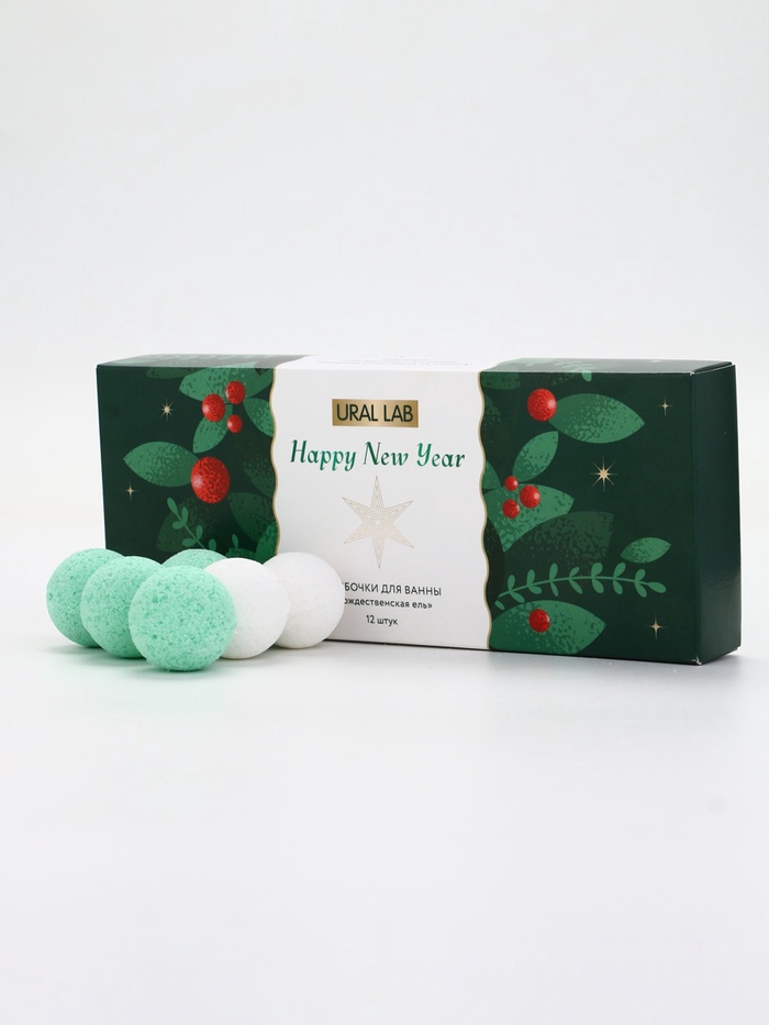 Бомбочки для ванны Happy New Year, аромат рождественская ель, набор 12 шт. × 20 г, URAL LAB