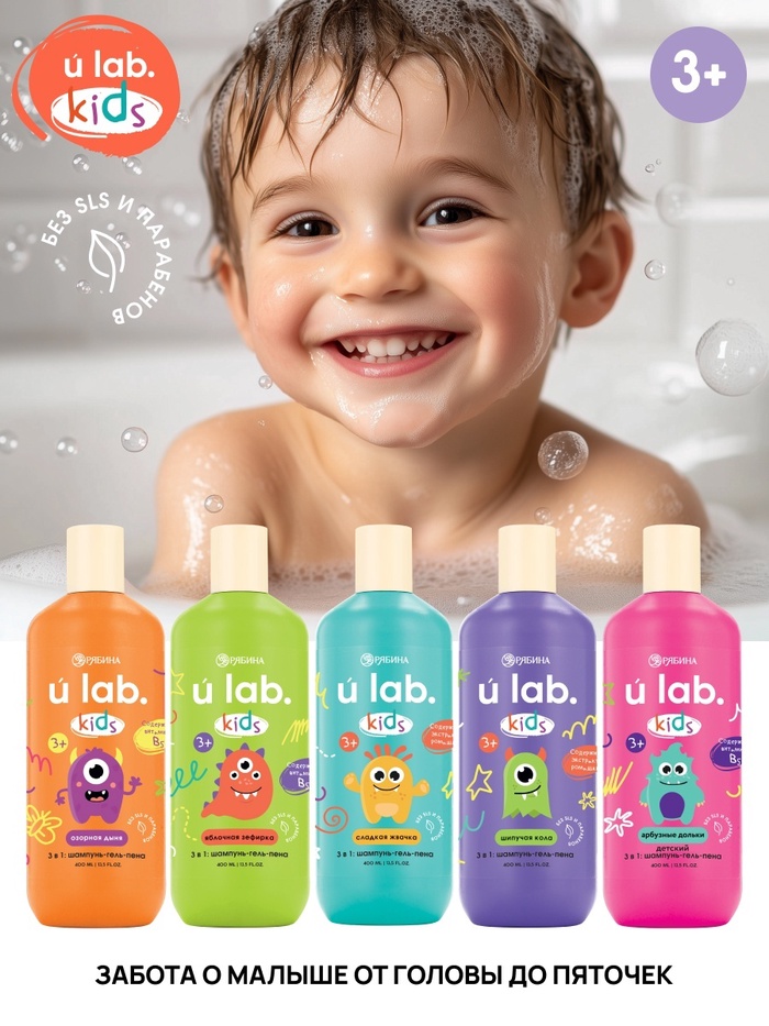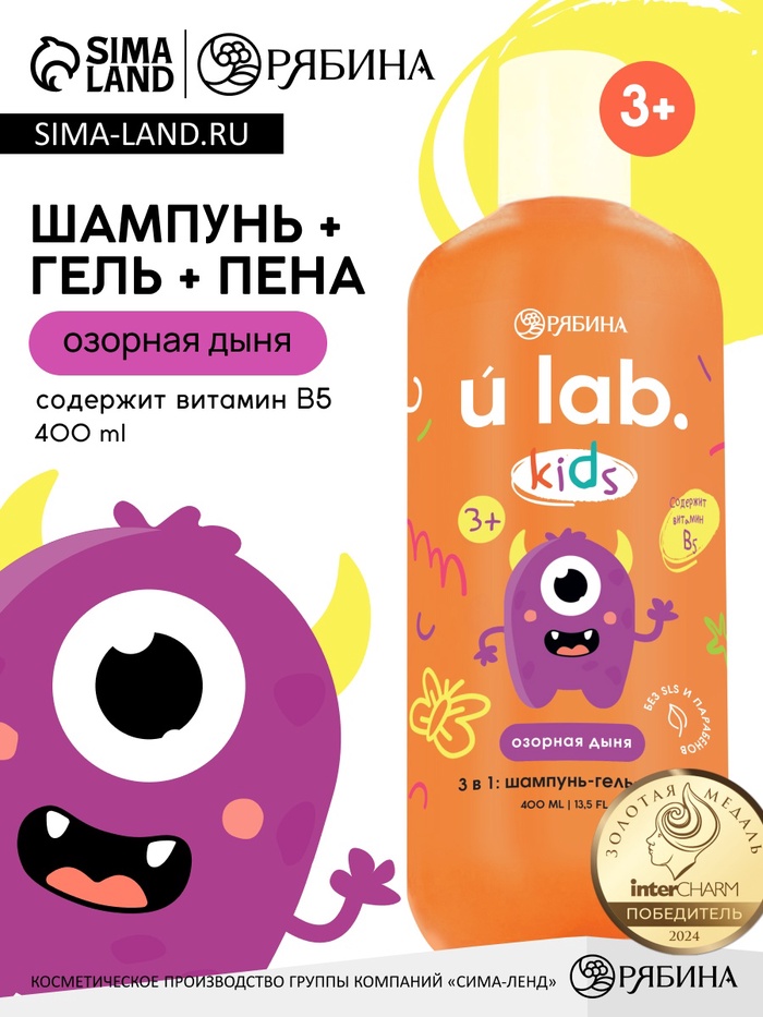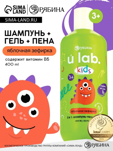 Детский шампунь-гель-пена 3в1 «Монстрики», 400 мл, аромат озорная дыня, ULAB