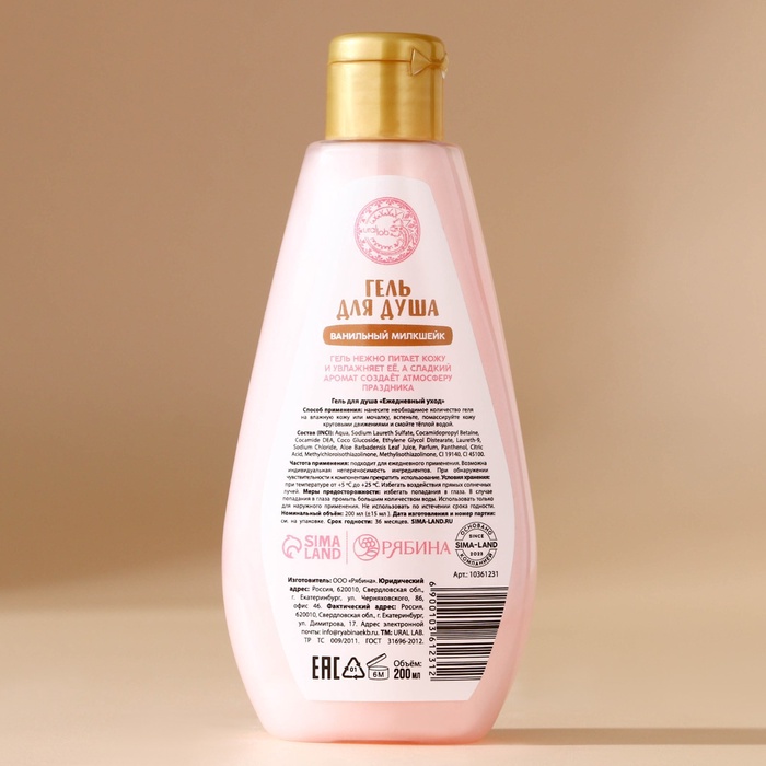 Гель для душа URAL LAB, 200 мл, аромат ванильного милкшейка
