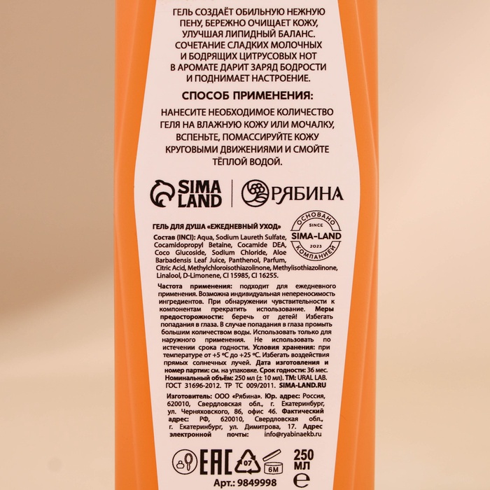 Гель для душа, 250 мл, аромат латте-мандарин, URAL LAB