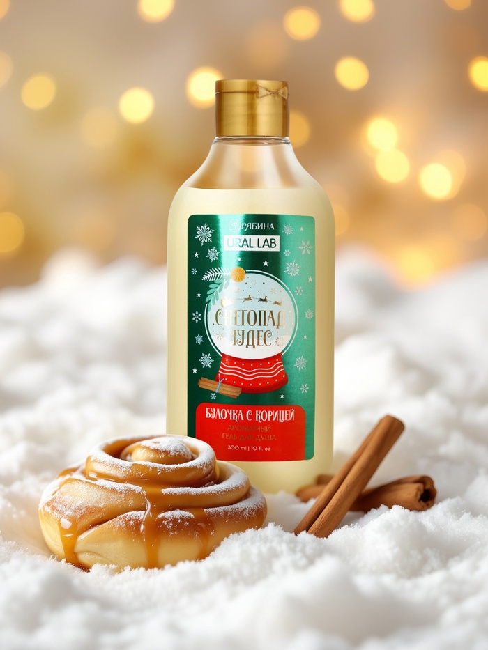 Гель для душа URAL LAB, 300 мл, аромат булочки с корицей, Новый Год