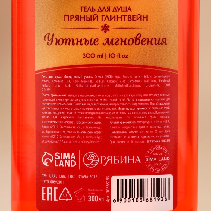 Гель для душа, 300 мл, аромат пряного глинтвейна, URAL LAB