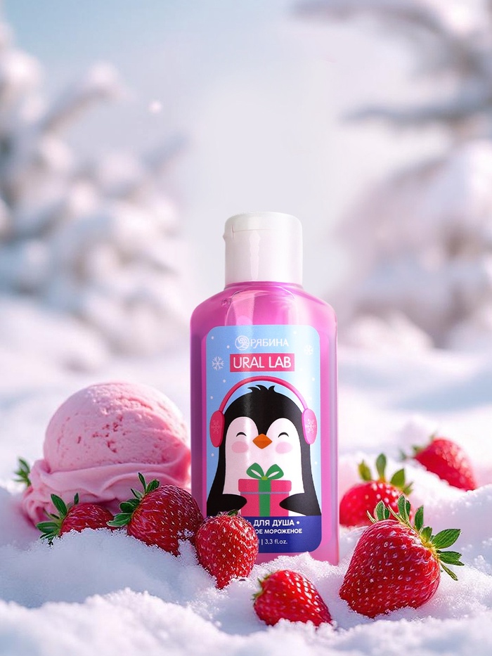 Гель для душа новогодний, клубничное мороженое, 100 мл, Ural Lab