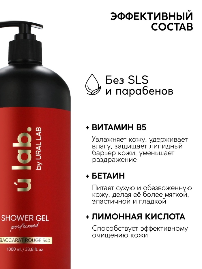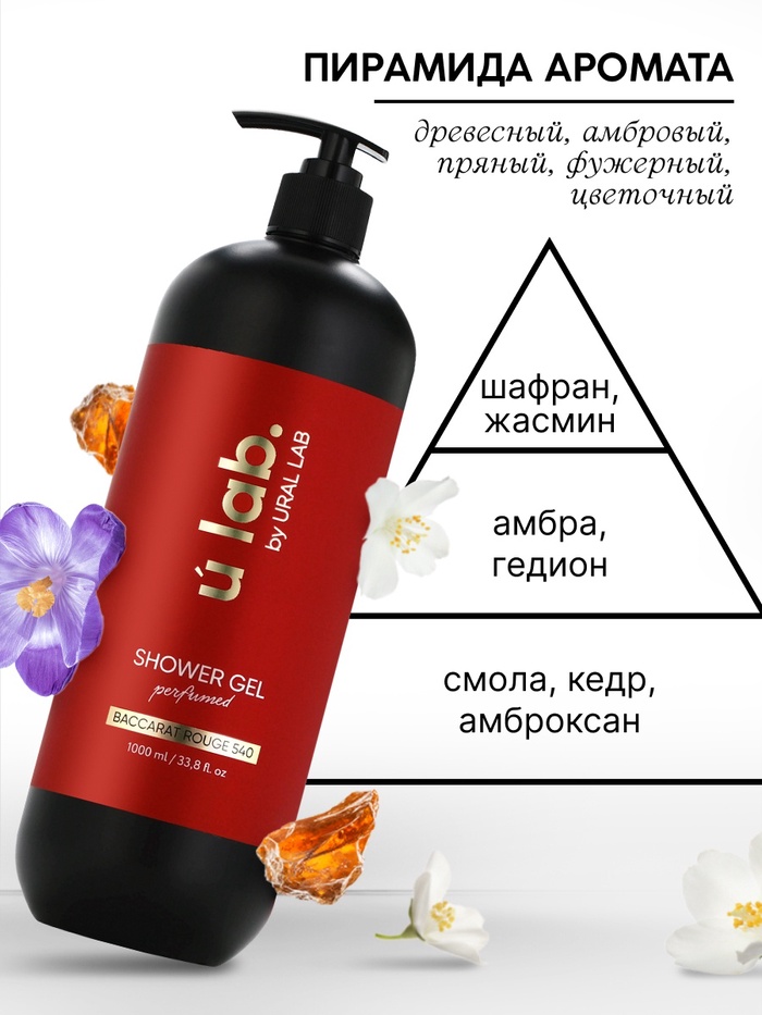 Гель для душа женский, парфюмированный Baccarat Rouge, 1000 мл, ULAB