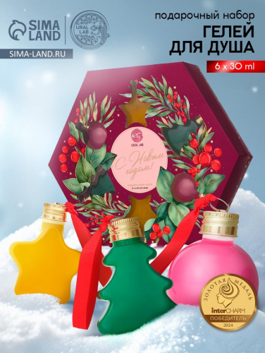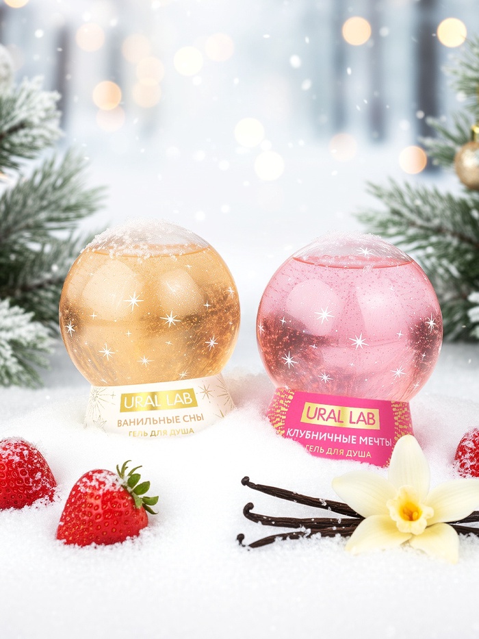 Гели для душа в форме ёлочных шаров Happy New Year, набор 2 шт. × 245 мл, URAL LAB