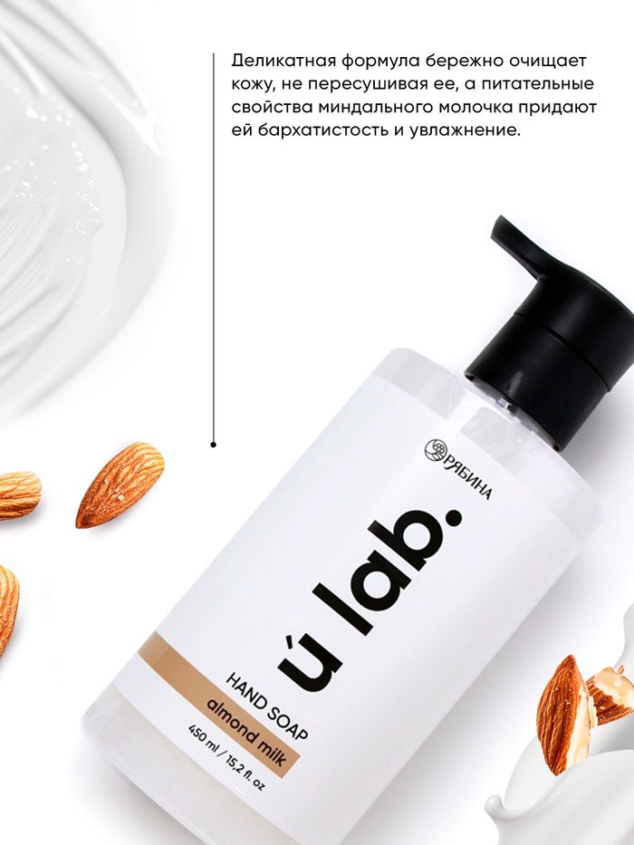 Мыло для рук жидкое, 450 мл, аромат миндальное молоко, ULAB