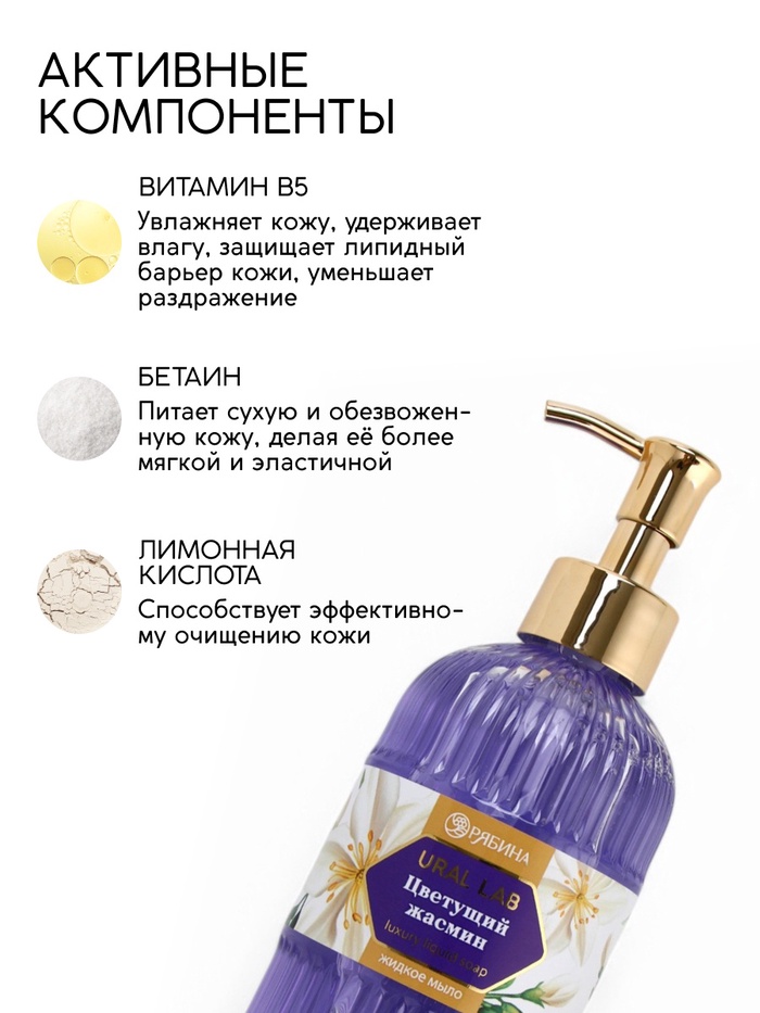 Мыло для рук жидкое, парфюмированное, с ароматом цветущий жасмин, 300 мл, URAL LAB