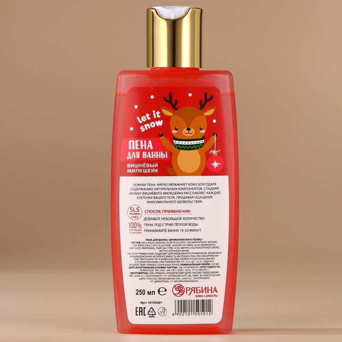 Пена для ванны, 250 мл, аромат вишнёвого милкшейка, URAL LAB