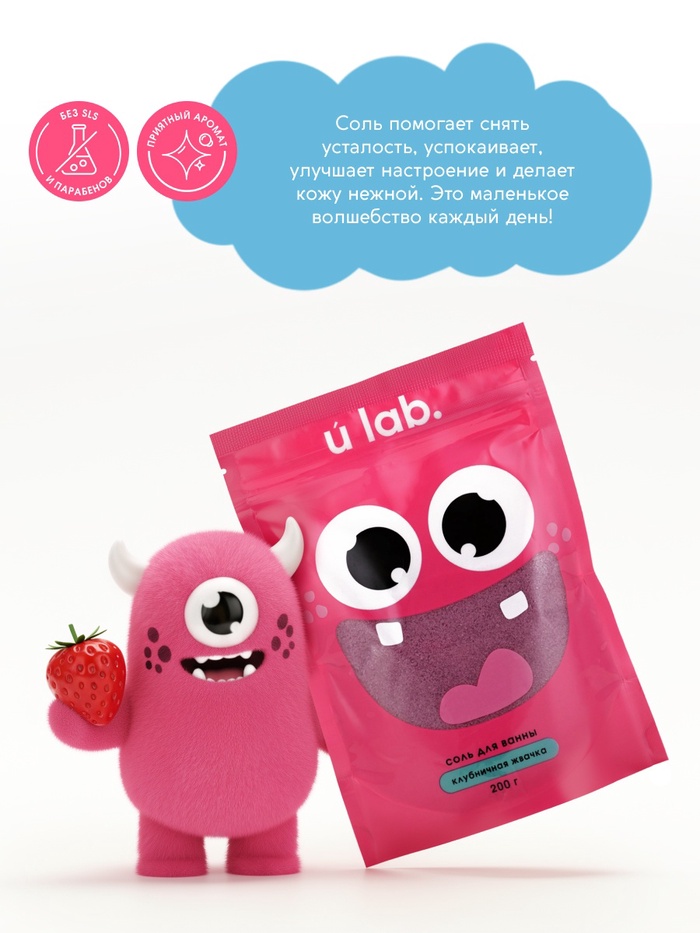 Соль для ванны «Монстрики», 200 г, аромат клубничная жвачка, ULAB