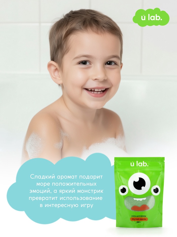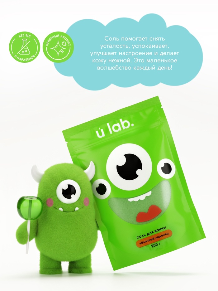 Соль для ванны «Монстрики», 200 г, аромат яблочный леденец, ULAB