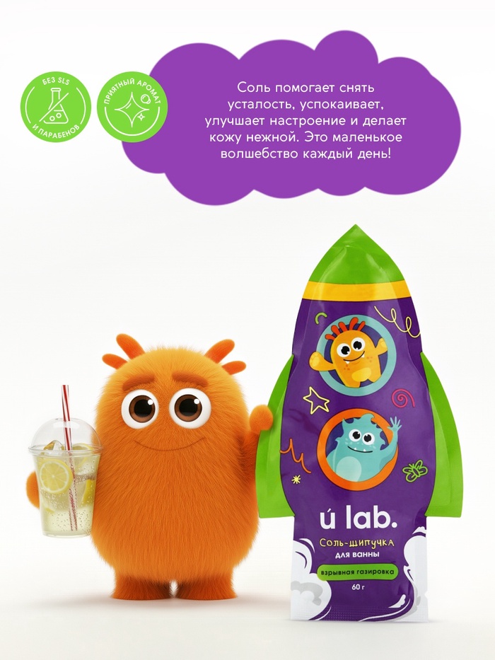 Соль для ванны «Монстрики», 60 г, аромат взрывная газировка, ULAB