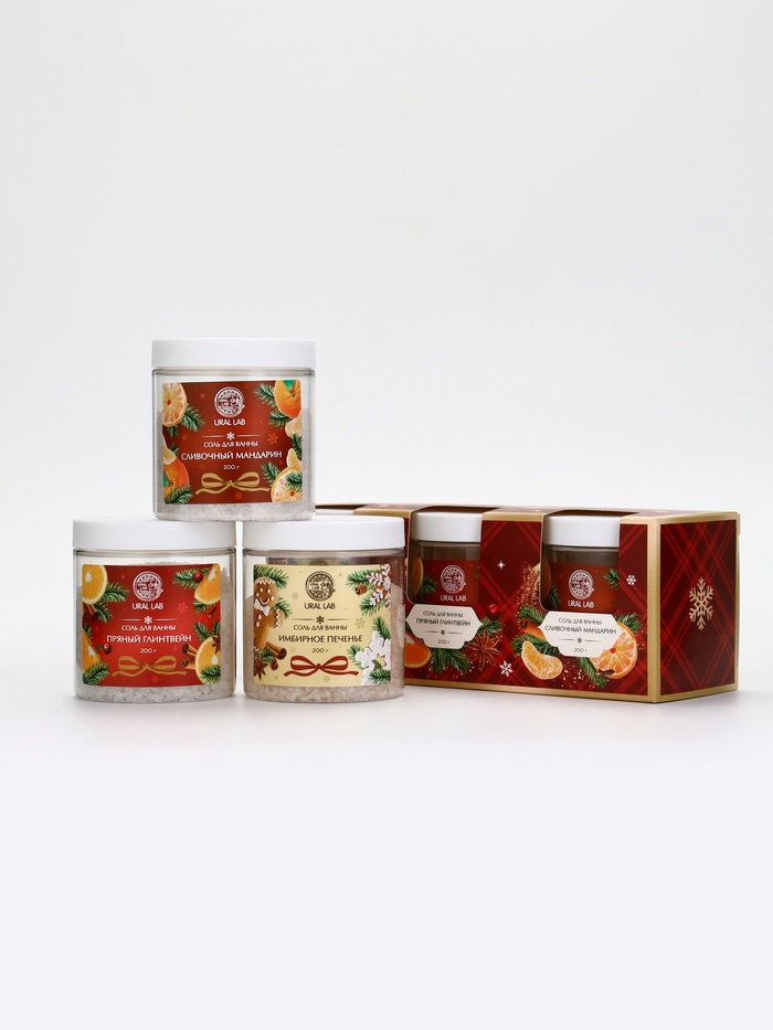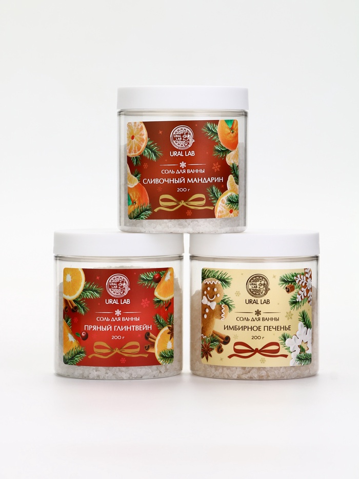 Соль для ванны, набор 3 шт. × 200 г, имбирное печенье, глинтвейн, мандарин, URAL LAB