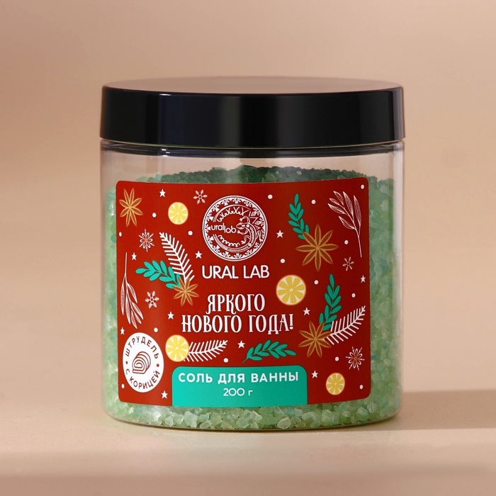 Соль для ванны URAL LAB «Яркого года», 200 г, аромат штруделя с корицей